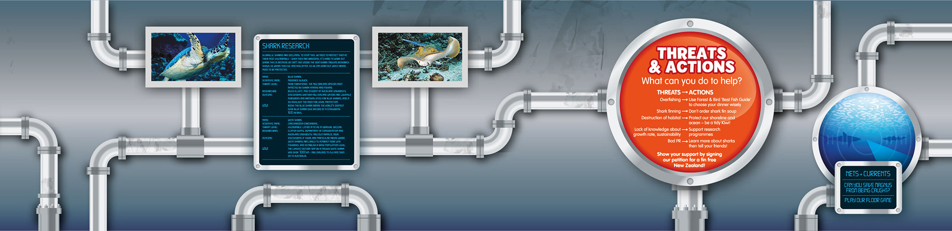 Designs & artwork for theme park attractions. Brief: To produce ongoing creative display, brochure design and illustration across a selection of nationwide and international attractions. Photoshop compositions were created for lively fun attraction posters. Characters illustrated to enhance ecology messages and large format vector illustrations were created to theme entire aquariums.